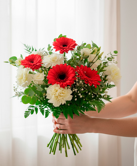 Disponemos de una amplia variedad de ramos de flores frescas, rosas, tulipanes, lirios, margaritas o gerberas, todos preparados a mano por nuestros floristas en Flor 10.